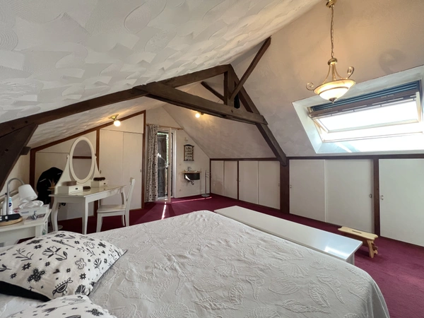 Palier aménagé en espace bureau Deux grandes chambres mansardées (environ 14m2 et 19m2 carrez) WC indépendant