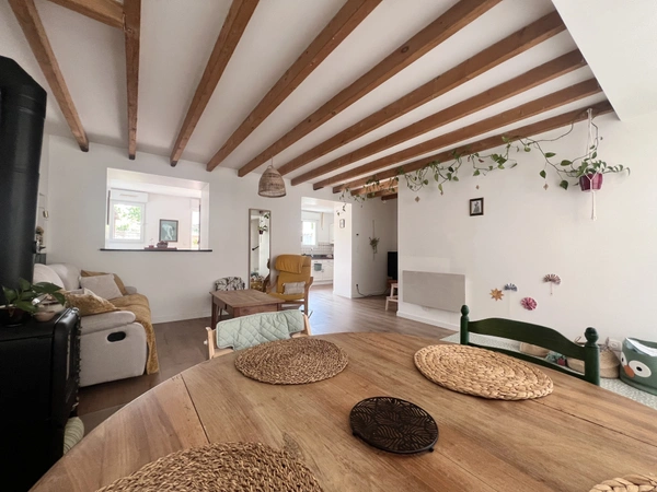 Belle pièce de vie lumineuse, agréable et fonctionnelle Cuisine aménagée et équipée Cellier pratique Garage attenant