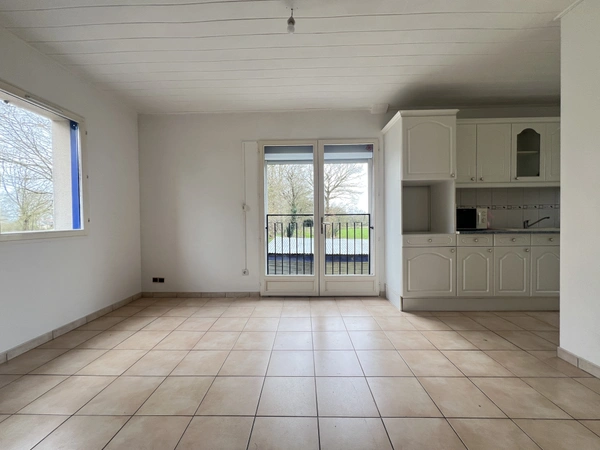 Cuisine, ouverte sur la salle à manger. Salon chaleureux avec cheminée. Une chambre confortable. Salle d'eau avec WC.